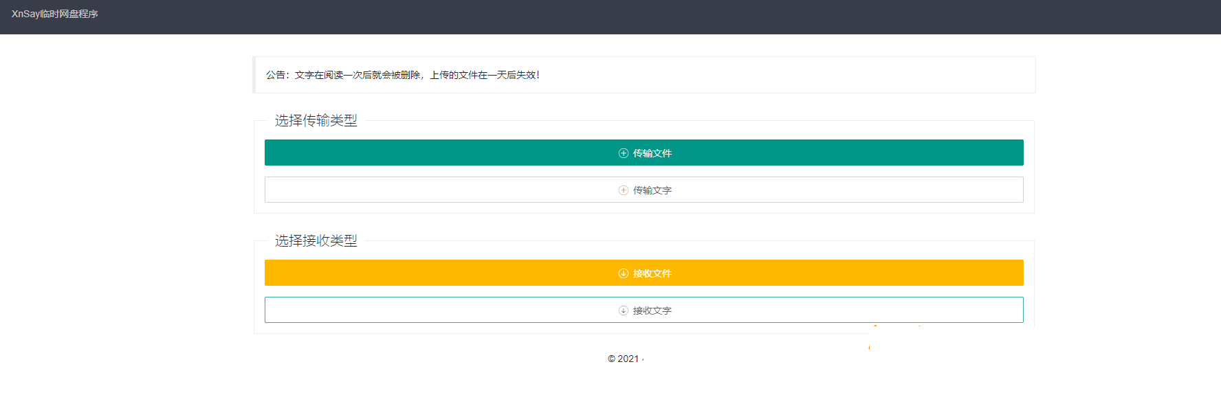 这个程序起初是小牛云站长闲暇时写的临时网盘程序,使用提取码提取文件,不需要上传。后来又写了一个文字传输,最终把两个程序的代码全部合并在一起,现在开源分享给大家。