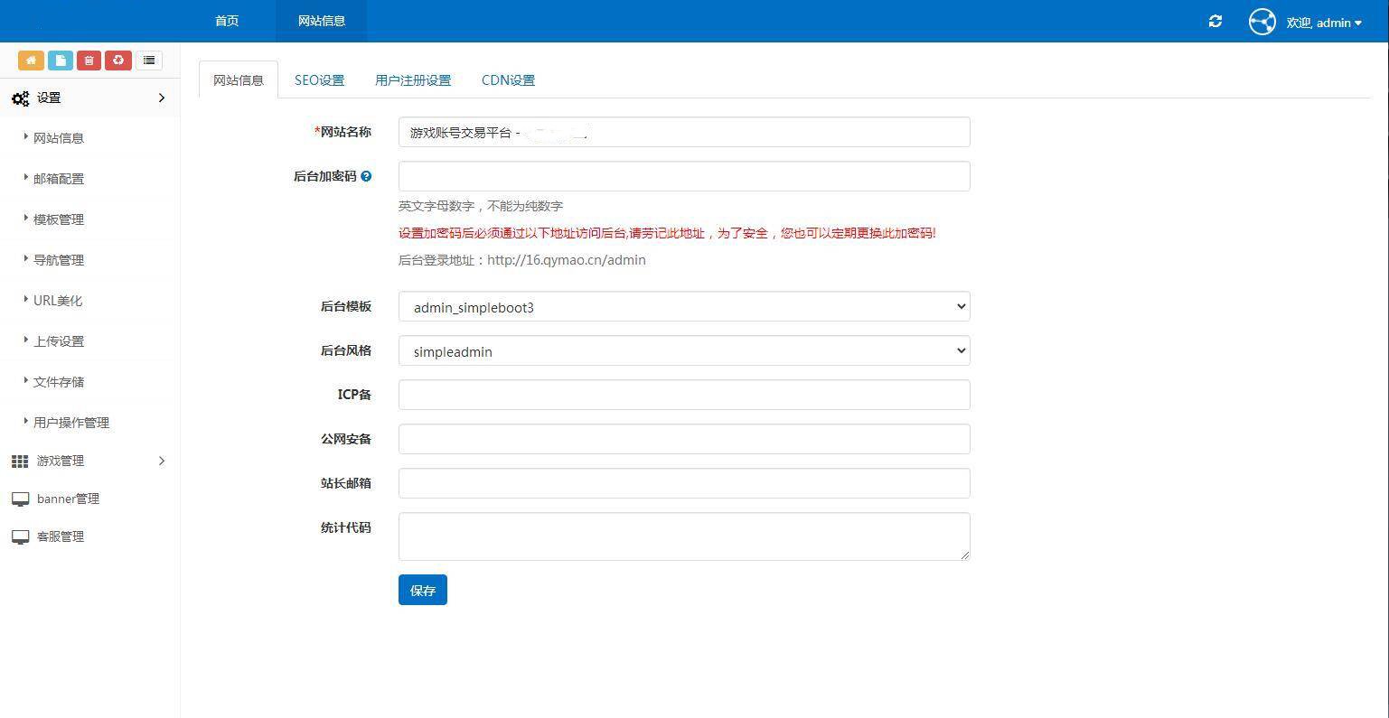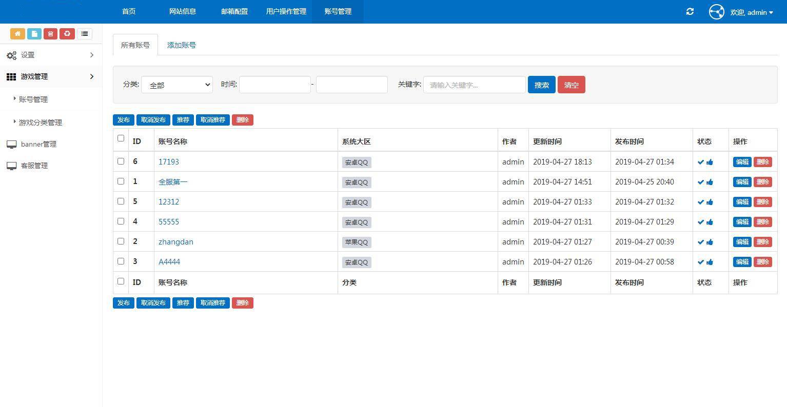 简介: ThinkCMF开发的一款 游戏账户出售 游戏账户交易 手机展示源码。带后台 东西比较简单,有cdn的css和js失效了,自行替换一下即可。 此套程序源码比较老了,好在可以正常运行,有能力的可以二开美化一下。 图片: 网站后台演示截图: 资源下载此资源下载价格为6.6U点点击检测网盘有效后购买,VIP免费立即升级客服QQ:305582964 联系邮箱:305582964@qq.com