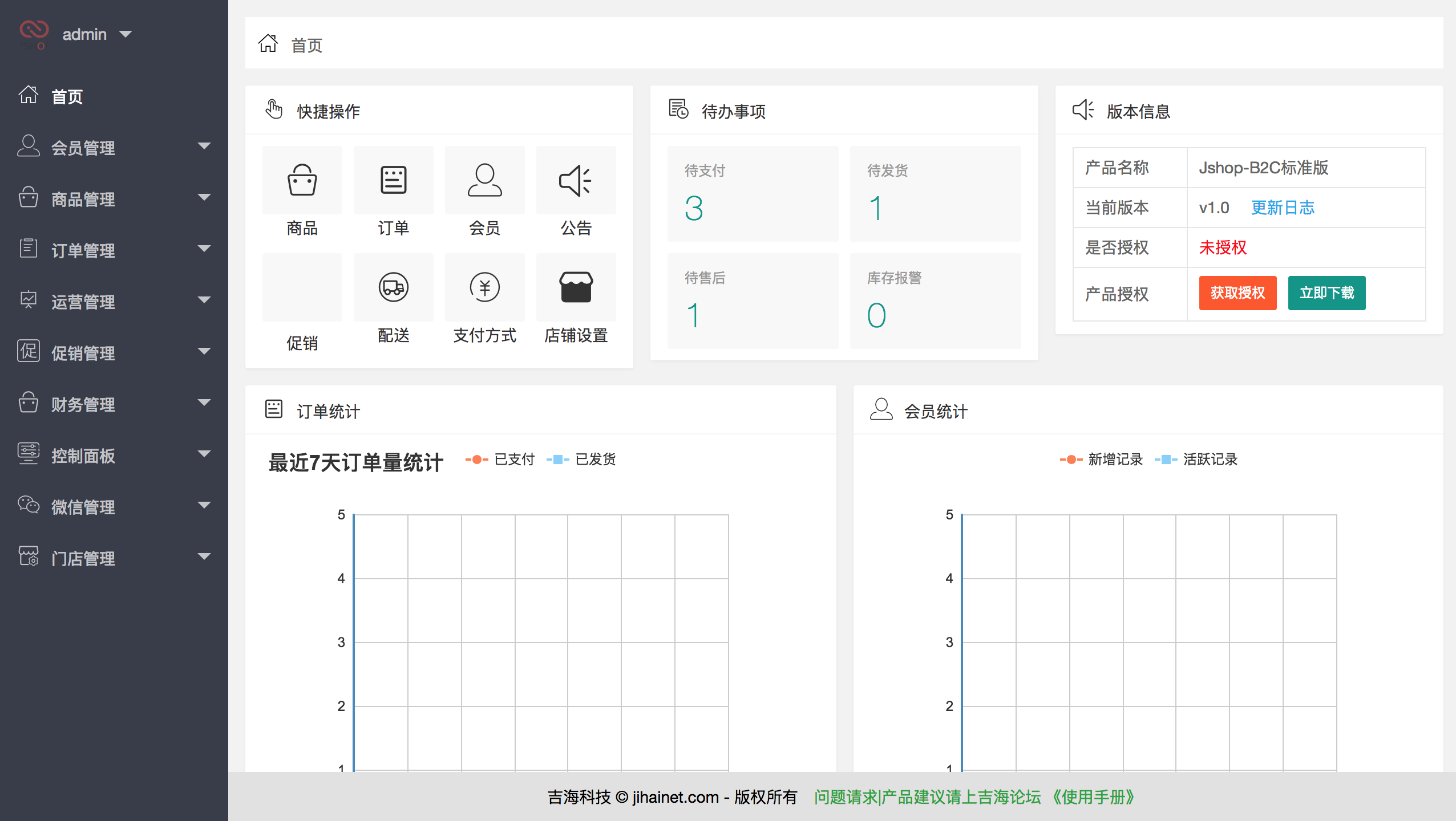 Jshop小程序商城,是一款开源的电商系统,为中小企业提供最佳的移动电子商务解决方案。后台采用Thinkphp5.1框架开发,执行效率、扩展性、稳定性值得信赖,前台H5采用VUE开发,增加用户体验。